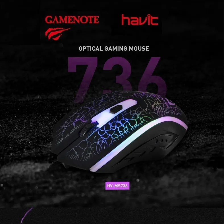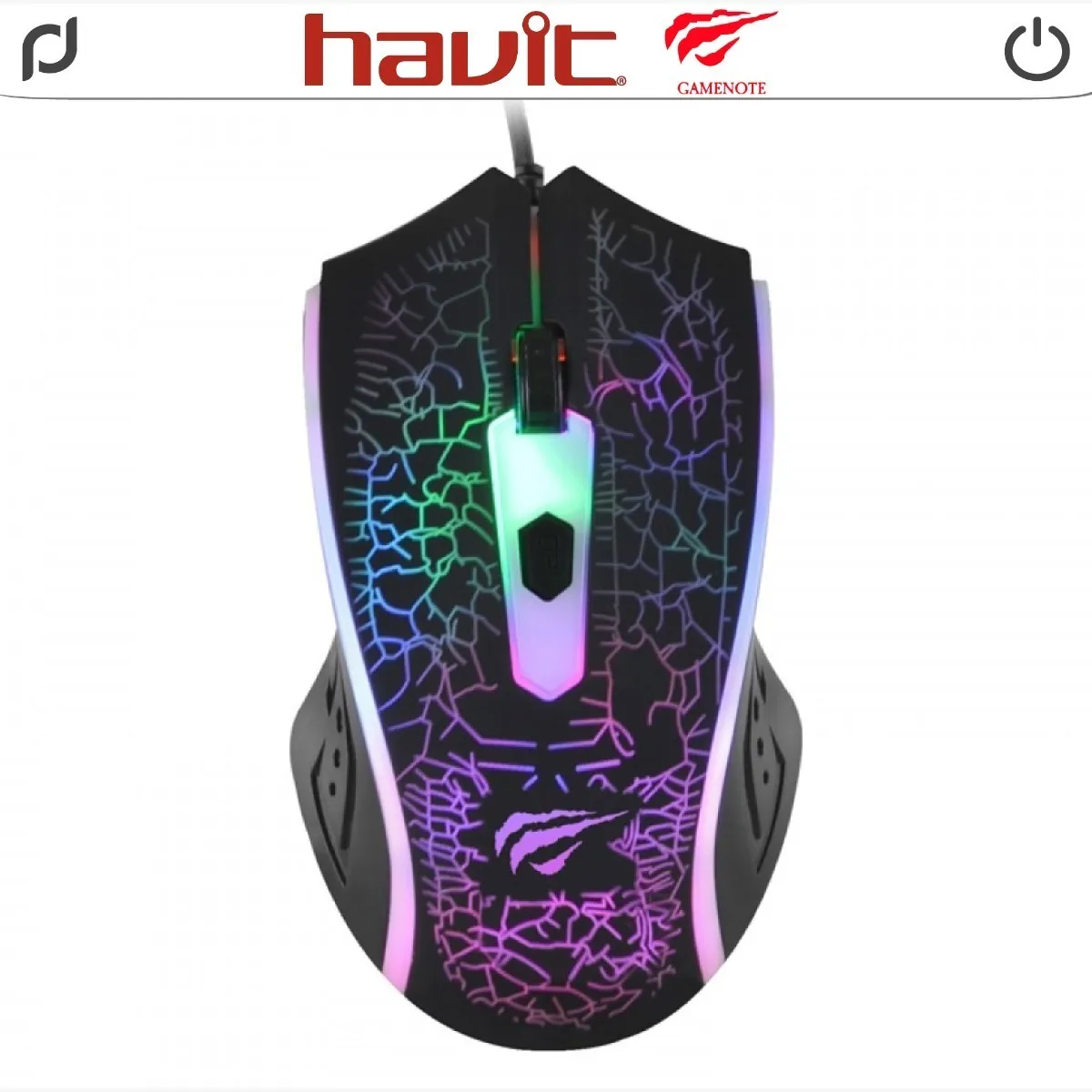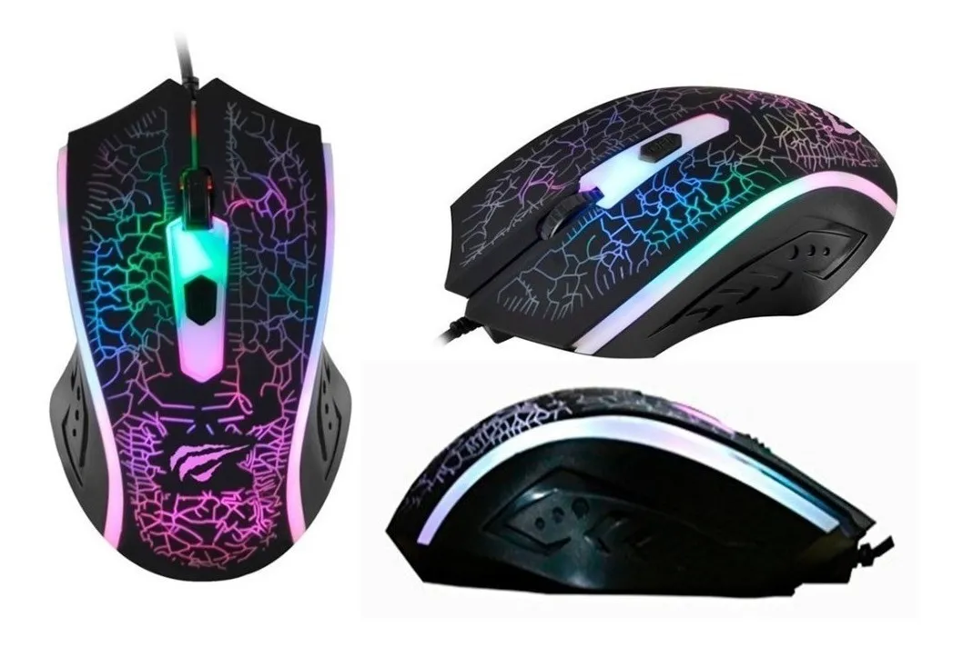 MOUSE GAMER HAVIT CON CABLE DE 1.5M CON LUCES, NEGRO