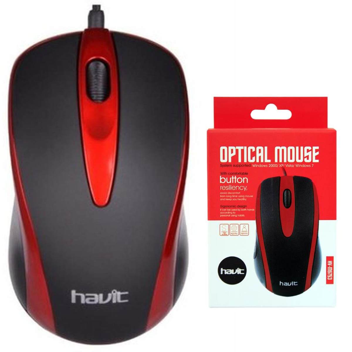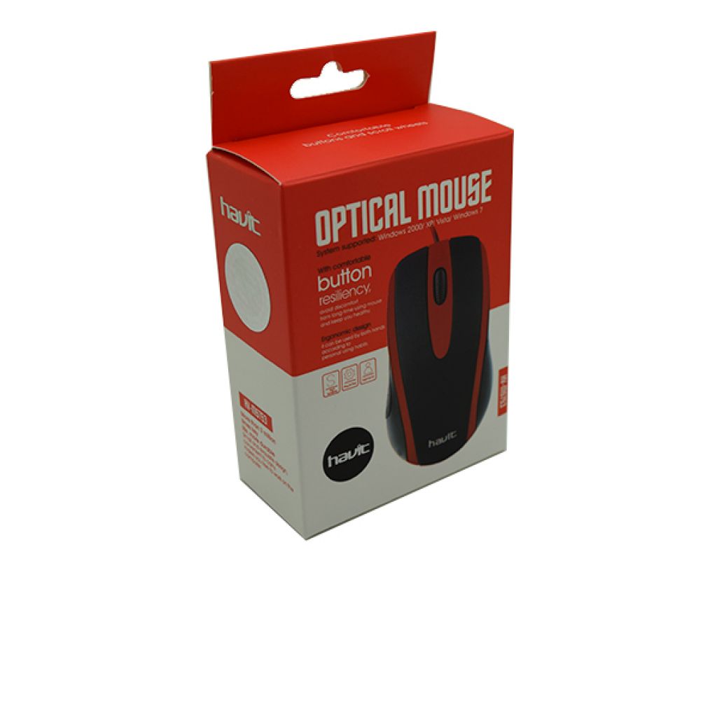 MOUSE HAVIT RED 1000 DPI CABLE 1.35M
